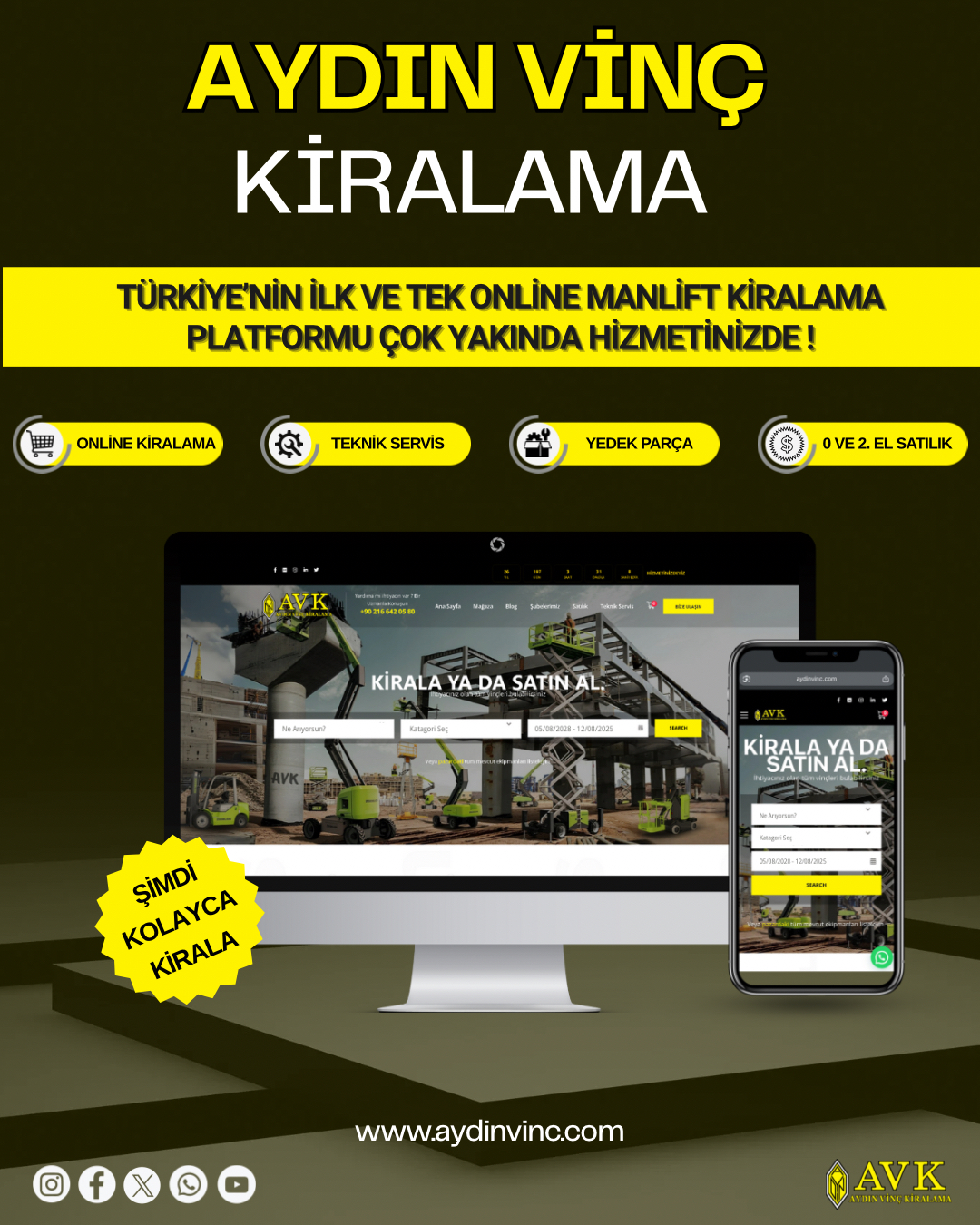 Personel yükseltici platform ve vinç kiralama alanında Türkiye’nin öncü firmalarından biri olan Aydın Vinç Kiralama, dijital dönüşüm yolculuğunda sektöre örnek olacak bir adım daha attı. www.aydinvinc.com adresinden erişilebilen yeni nesil web sitesi, yalnızca bir tasarım yeniliği değil; Türkiye’de ilk ve tek olan tamamen online platform kiralama sistemiyle sektörde bir ilke imza atıyor.